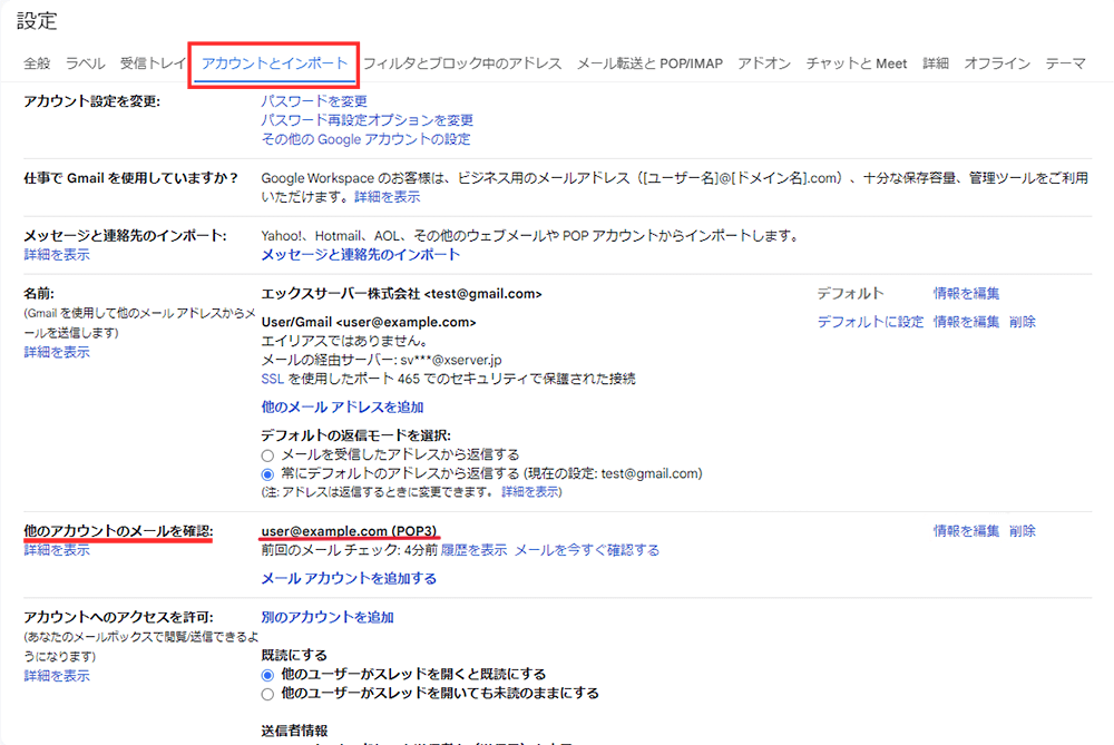 「設定 → アカウントとインポート」にある「他のアカウントのメールを確認」に