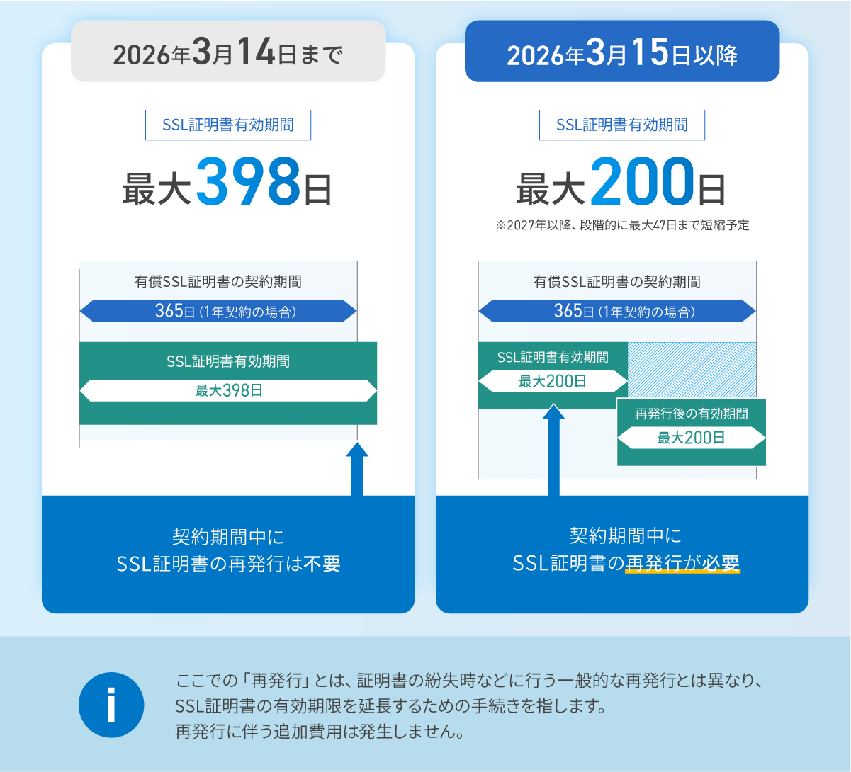 2026年3月15日以降に発行される証明書から、最大有効期間が段階的に短縮されます。