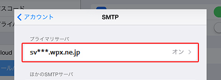 - 3. 「送信メールサーバ」欄のSMTPをタップ